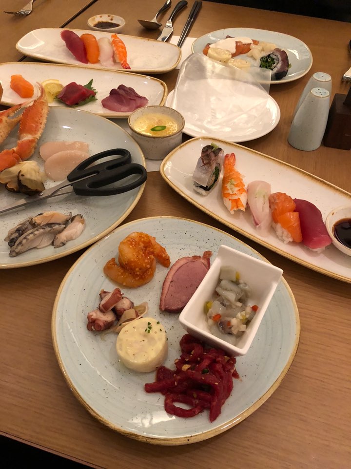 저희가 안내받은 쪽은 차가운 음식들 공간이라 먼저 해산물 음식들을 맛봤답니다. 초밥도 맛있고 무엇보다 해산물이 엄청 신선하단 느낌이 팍팍 들어서 엄청 만족스럽게 먹었어요. 꼬들꼬들~~ 포스팅 하는 순간에도 다시 가서 먹고 싶네요ㅎㅎ